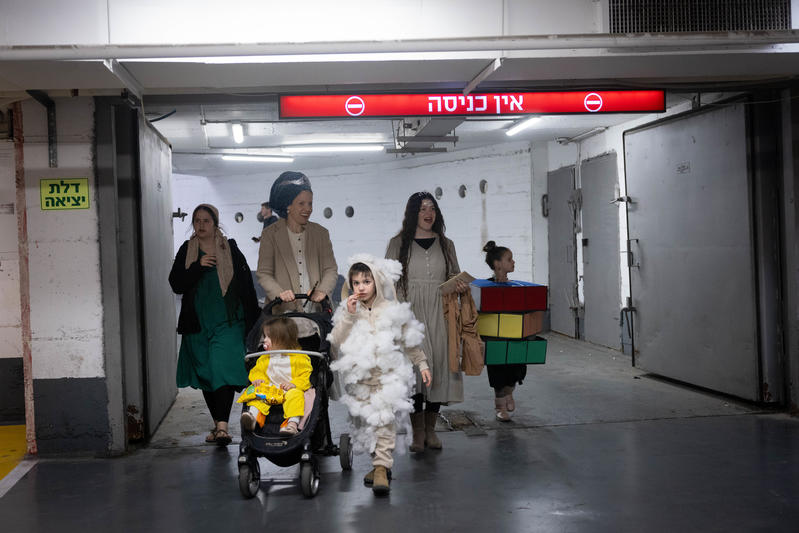 Израильтяне приходят в укрытия в карнавальных нарядах — кто в образе храброго льва, кто в маске клоуна, а кто с накидкой супергероя поверх повседневной одежды. Здесь читают свиток Эстер, раздают сладости, обнимают детей и стараются исполнить заповедь радости — даже в непростых условиях войны.