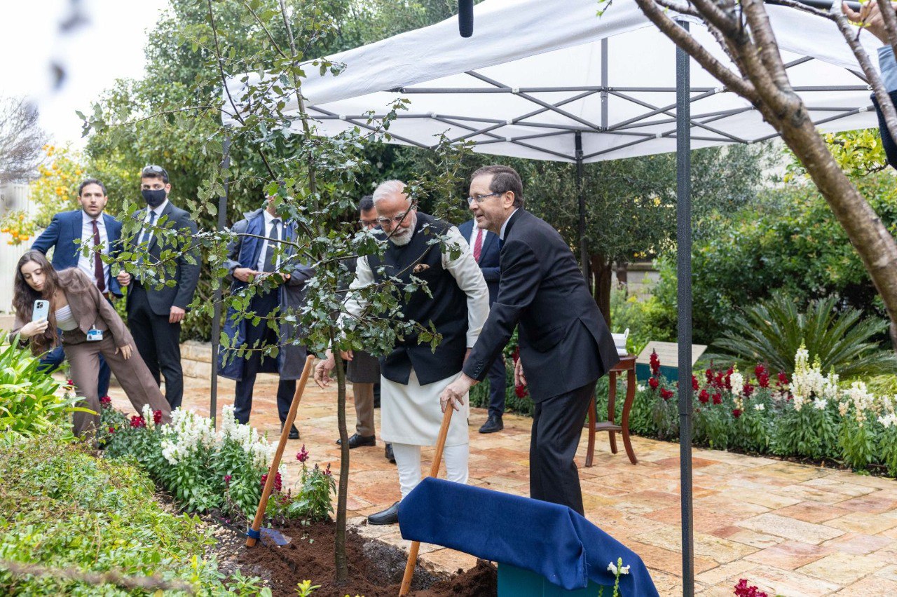 В рамках визита Нарендра Моди также встретился с Ицхаком Герцогом в резиденции президента в Иерусалиме. Перед переговорами лидеры посадили дуб в саду резиденции — символ дружбы, роста и общего будущего двух стран.