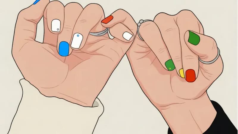 К примеру, на одном из плакатов изображен рычащий лев на фоне солнца. А по обе стороны расположены синие ленты, символизирующие надежду, с надписью «Мы с вами». На другом плакате можно увидеть пальцы двух рук — левой и правой — с ногтями, окрашенными в цвета флагов Израиля и Ирана. Подпись под плакатом на иврите и на фарси гласит: «Два государства».