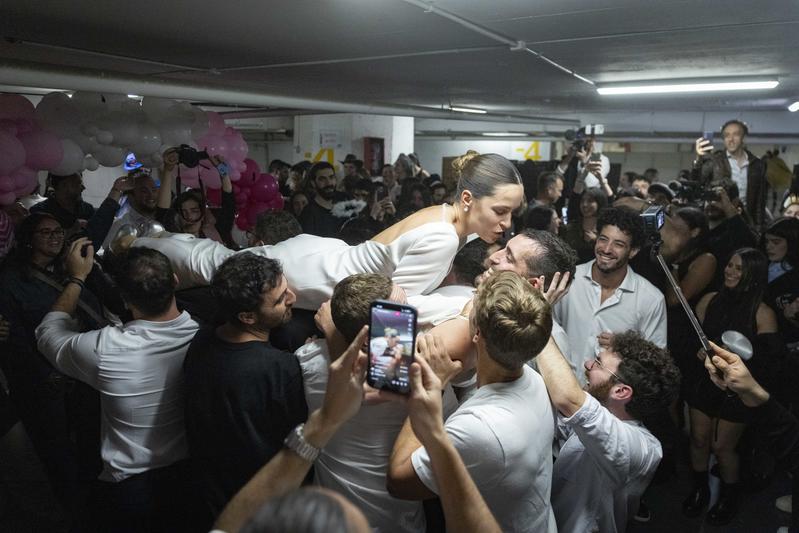 Михаэль (Миша) Марьянов и Лиор Ласри не испугались воя сирен и угроз обстрела, устроив церемонию бракосочетания во вторник вечером, 3 марта, на парковке «Дизенгоф-центр» в Тель-Авиве, которая используется как укрытие.